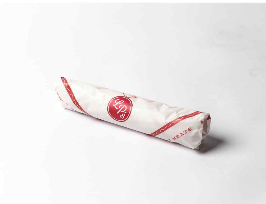 LP's Saucisson Sec is hand crafted in a traditional French style simply seasoned with garlic and black pepper and fermented and mould ripened in our purpose built maturing room helping to creating our signature rich and creamy flavour.